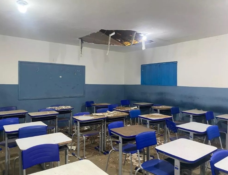 De acordo com as informações, por volta das 7h15, parte do forro de gesso de uma sala de aula caiu enquanto estudantes do 8º ano A estavam em atividade, gerando apreensão.